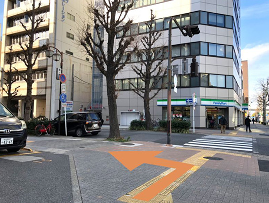 FamilyMartを越えてから1つ目の交差点を直進すると右手に見えてくる「第22プロスパー丸の内」というマンションの302号室が弊社です。